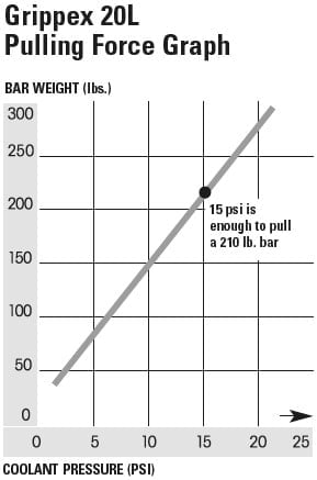 - Self-adjusting mechanism – fingers will close down until they contact the bar stock so no presetting is necessary. This feature allows the Grippex to make multiple pulls on the same workpiece, even after the OD has been turned.