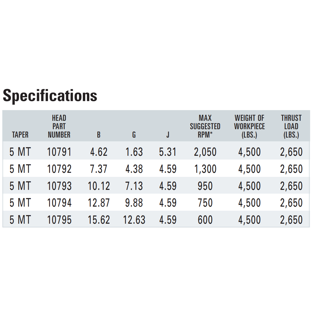 | Center Dimension A (Center Taper) | 5 MT |