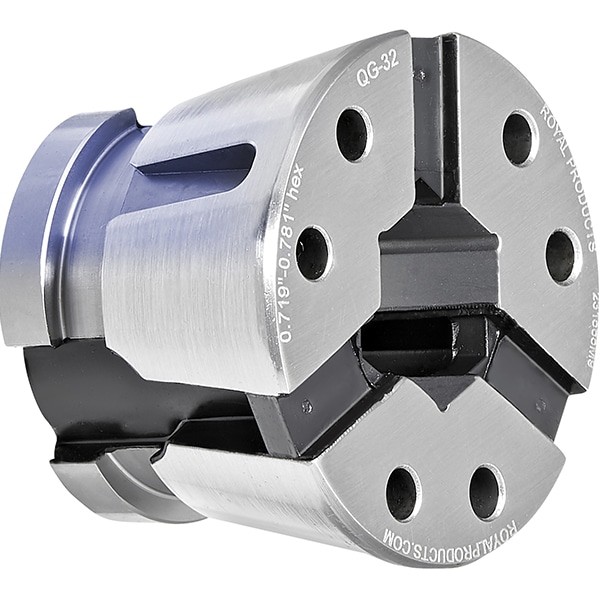 - Royal Quick-Grip Collets are precision-ground to nominal size, with a gripping range of ±0.031″ (0.040” for QG-100) to handle undersized/oversized stock.