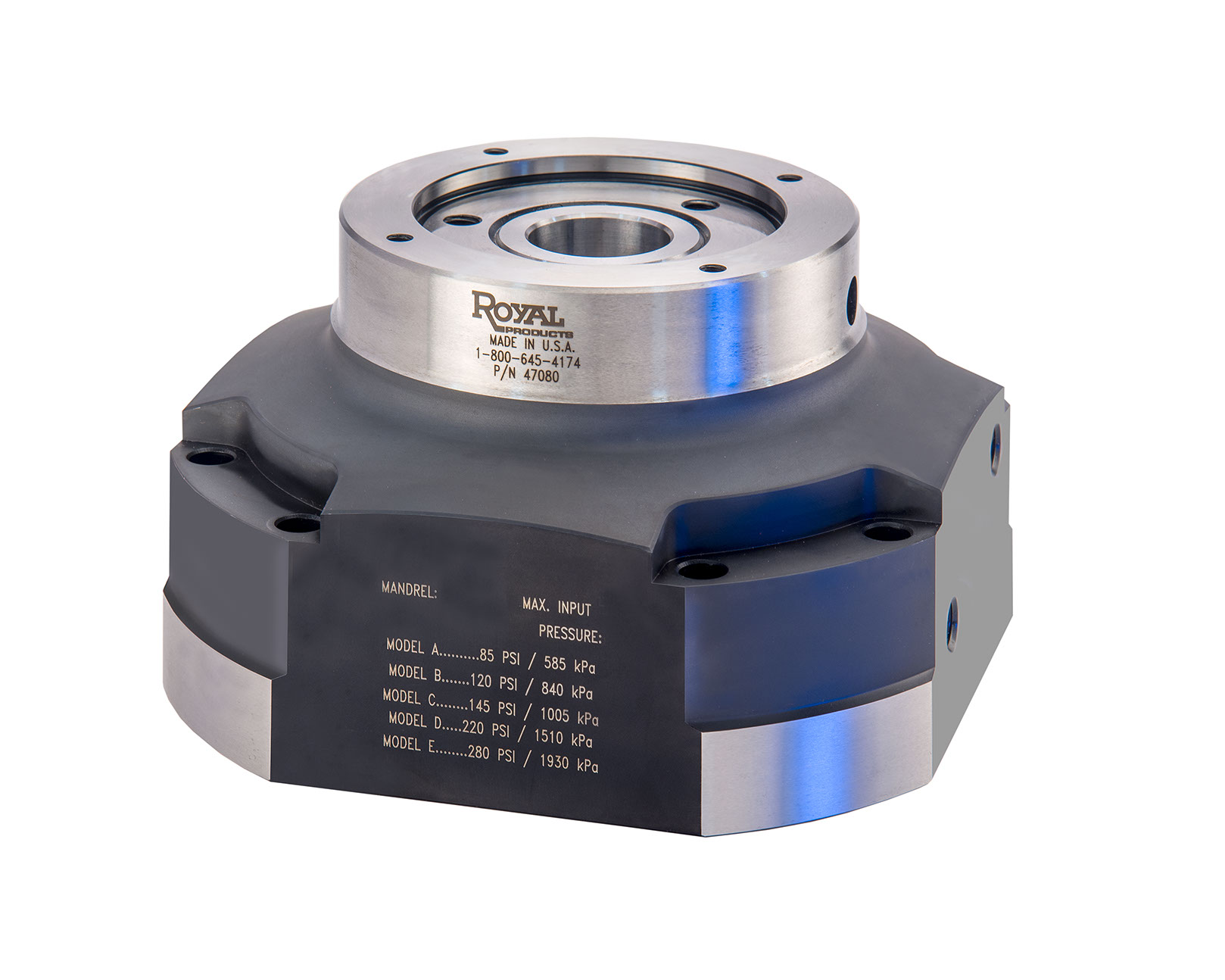 - The Royal Power-Block™ I.D. Workholding System enables secure gripping on the internal bore of a workpiece for full external machining access.
