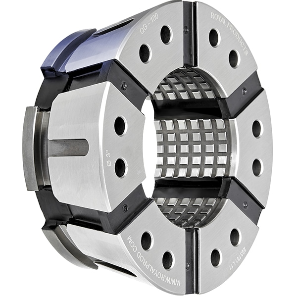 - Industry-leading 0.080" gripping range covers a wide range of part diameters. Collets are ground to nominal size and have a range of ±0.031".