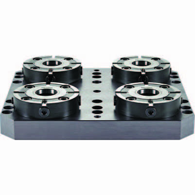 • Baseplates include multiple bolt-patterns to accommodate most common machining center T-slot spacing.