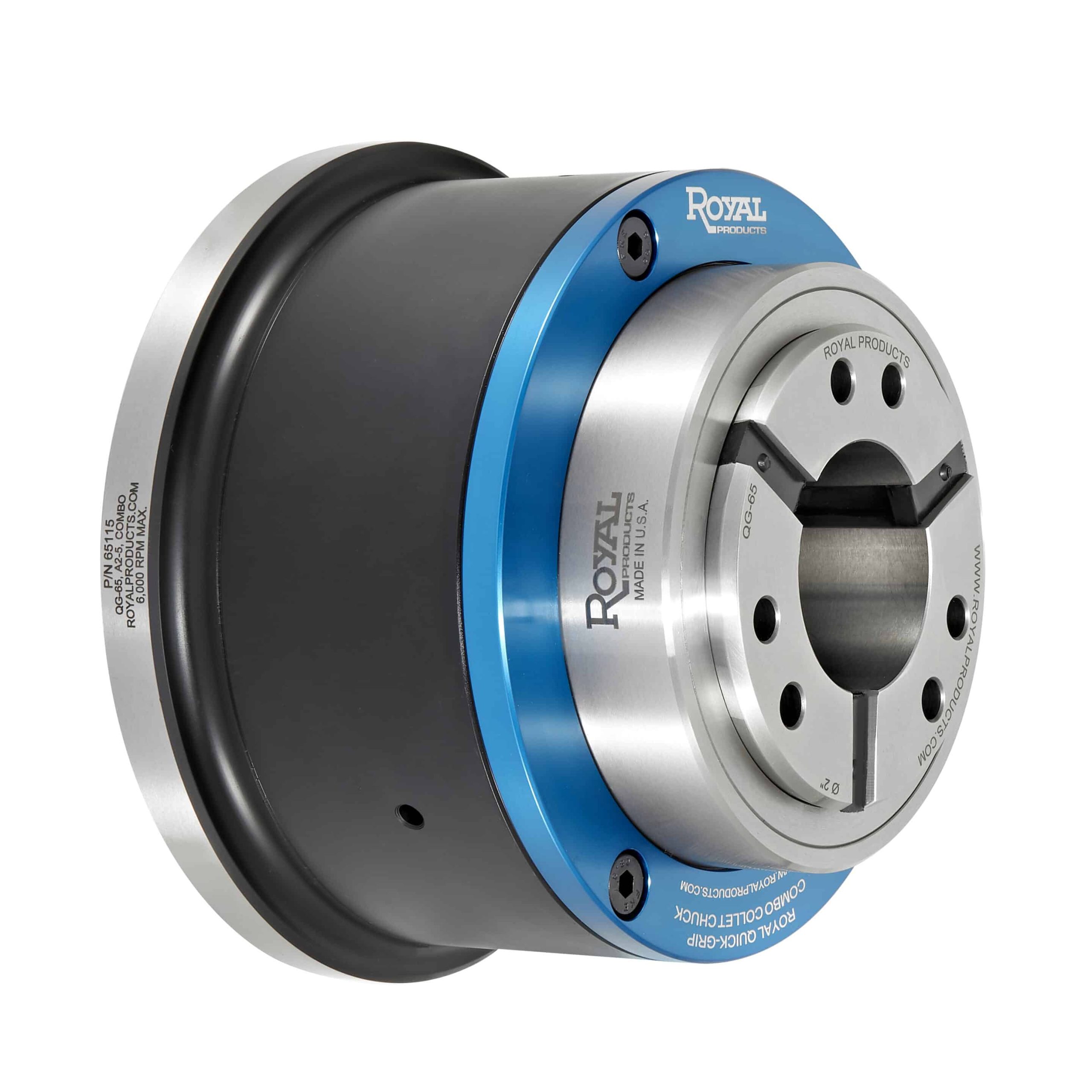 The Royal QG Combo Chuck represents the next generation of our best-selling QG-65 Accu-Length™ CNC Collet Chuck - it’s both a Quick-Grip™ Collet Chuck and an I.D. Workholding System All-in-One!