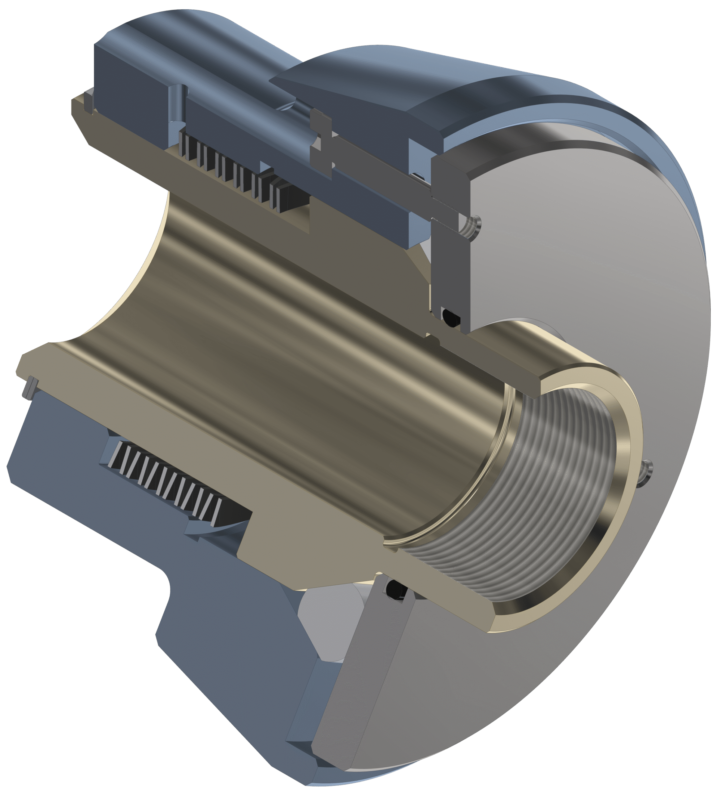 The special nose cap that houses the ID mandrel is based upon a precision face/taper interface to ensure near-perfect repeatability during changeovers. The mounting taper is located on the back side of the nose and is protected from chips by an aluminum ring when the I.D. system is not being used.